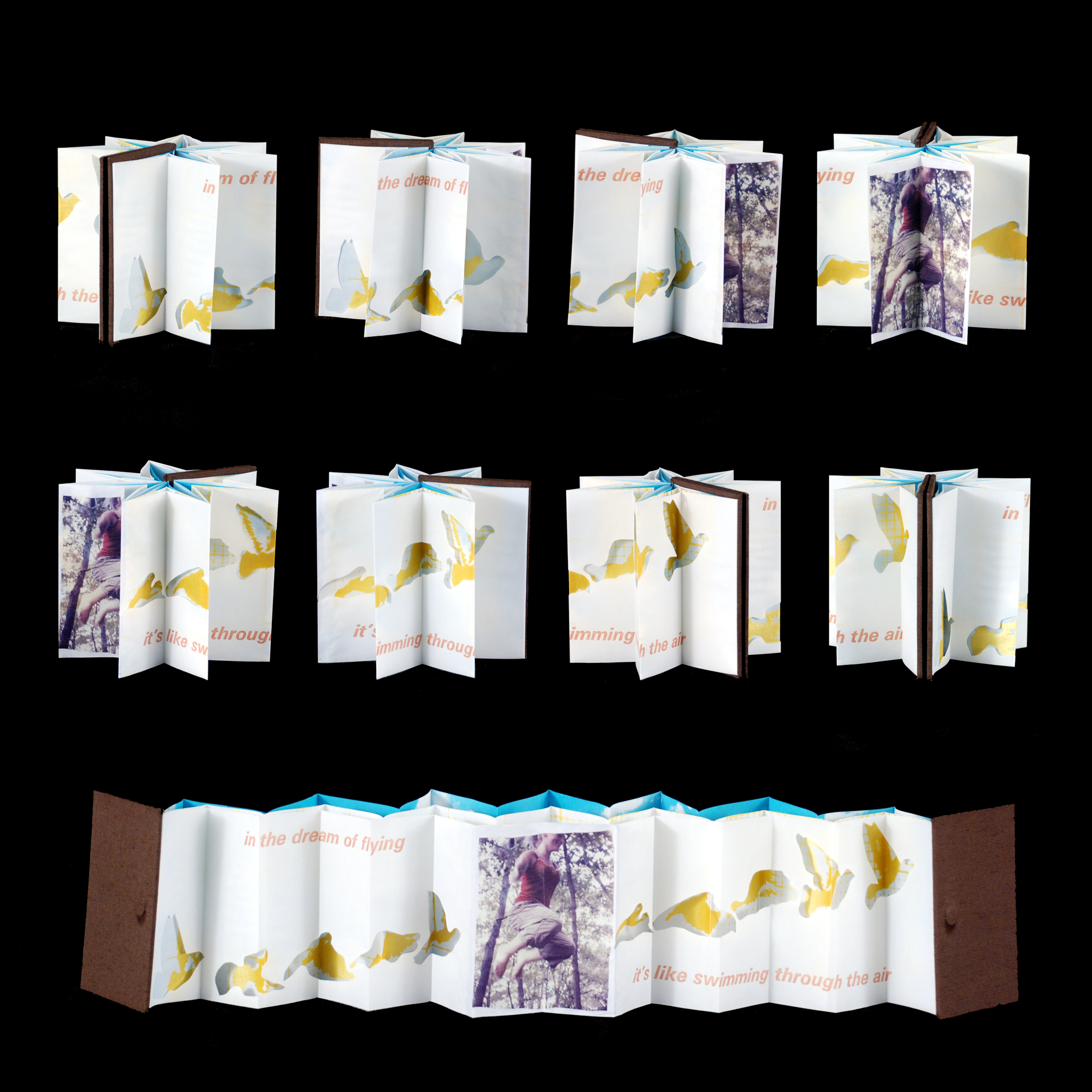 Inspired by an interest in oceanic travel, this book unfolds to create an environmental sculpture reminiscent of waves or distant mountain ranges.